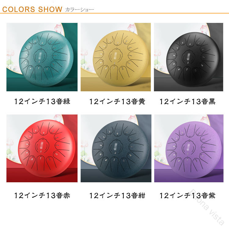 スチールタングドラム 子供向け リズム 12インチ13音緑 12インチ13音黄 12インチ13音黒 12インチ13音赤 12インチ13音紺 12インチ13音紫 13インチ15音浅い緑 13インチ15音黄 13インチ15音黒 13インチ15音銀 13インチ15音赤 13インチ15音紺 13インチ15音紫 13インチ15音白