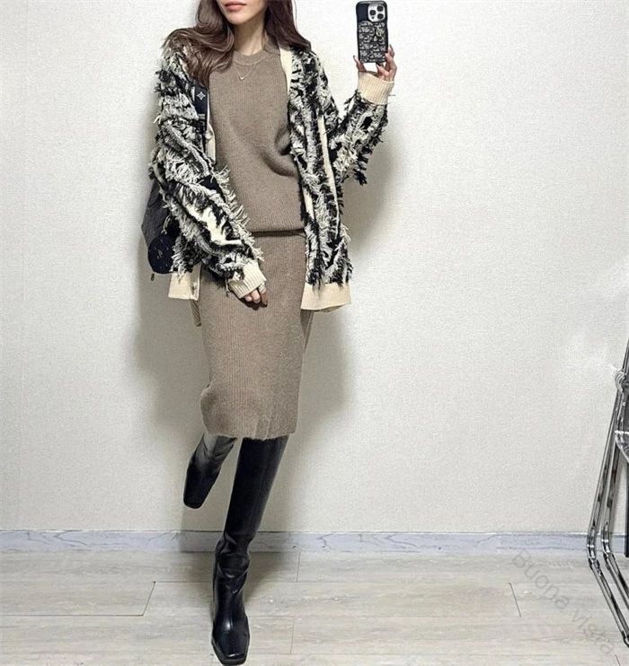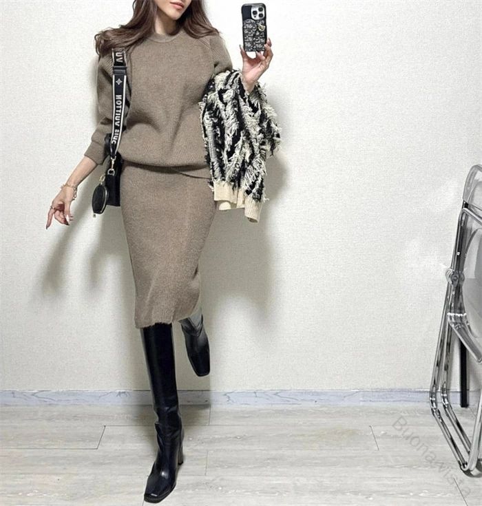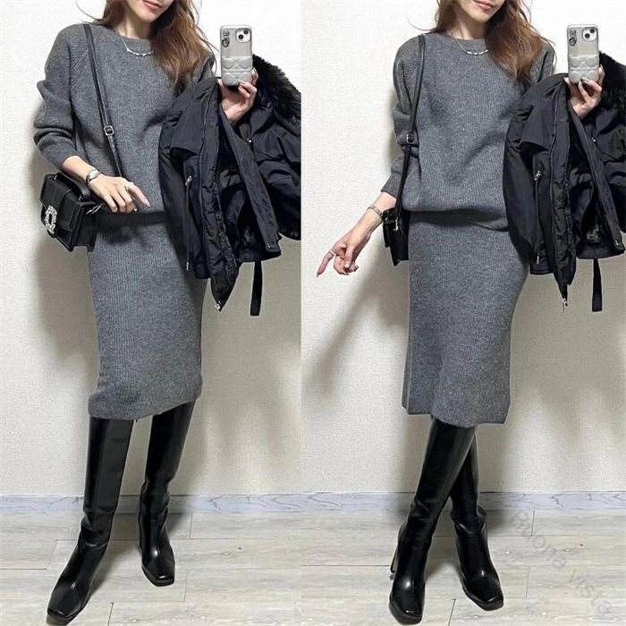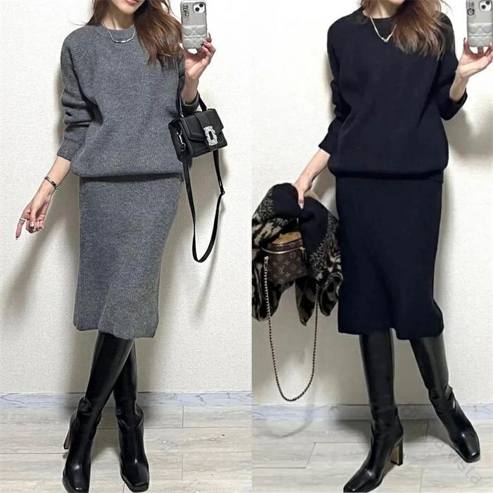ニット セットアップ 秋 冬 レディー スーツ セットアップ スカートスーツ 豊富 ブラック グレー ブラウン