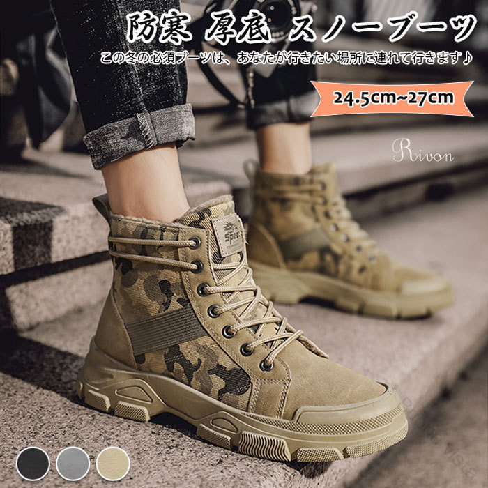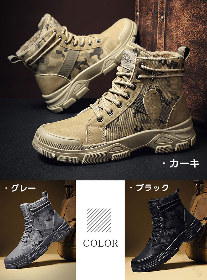 スノーブーツ メンズ 裏起毛 防寒 防 メンズ靴 スノーシューズ 続々入荷中 ブラック グレー カーキ 39(内寸24.5cm) 40(内寸25cm) 41(内寸25.5cm) 42(内寸26cm) 43(内寸26.5cm) 44(内寸27cm)