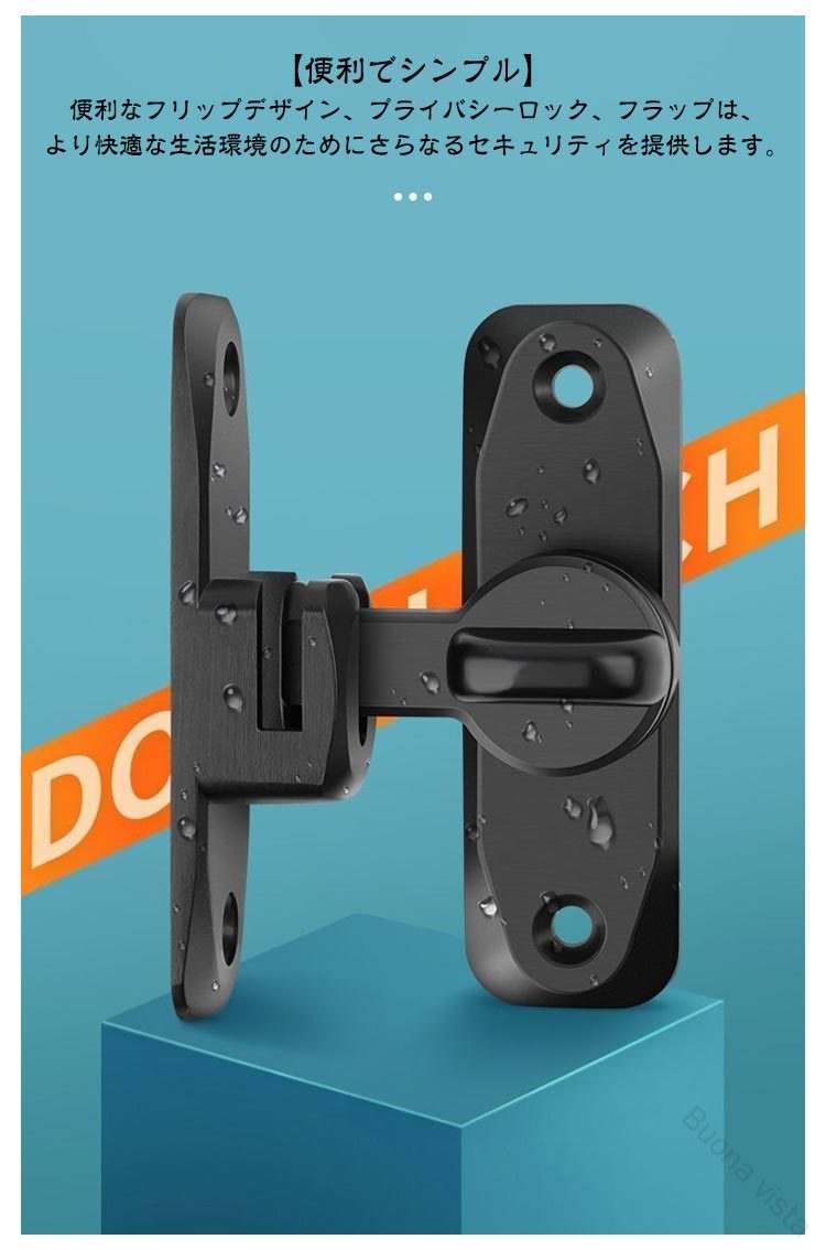 引き戸 90度 180度 窓ロック 穴あけ不要 後付け 亜鉛合金製 引き戸用鍵 ドア留め金ロック 回転式 フリップラッチロック とびらロック スライドロック 部屋 ドアロック 防犯対策に最適 鍵付き