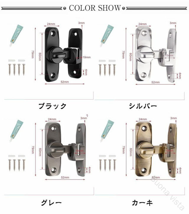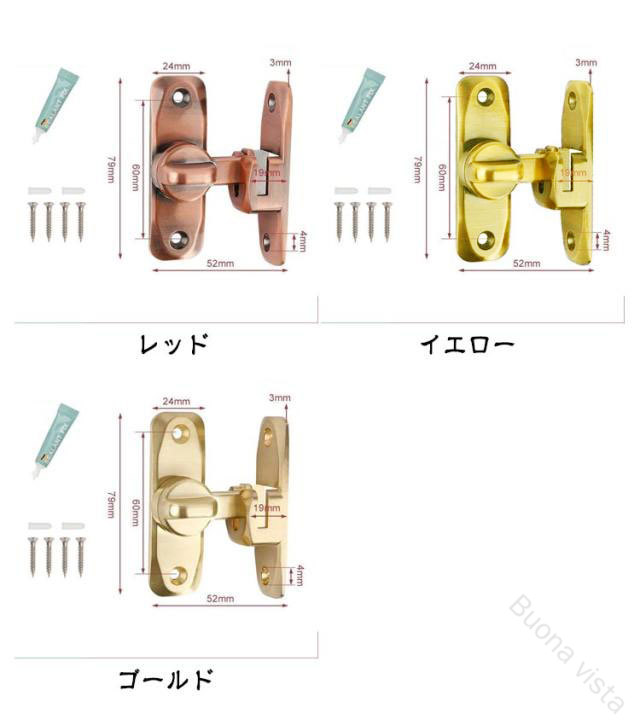 引き戸 90度 180度 窓ロック 穴 ブラック シルバー グレー カーキ レッド イエロー ゴールド