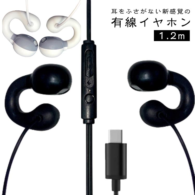 オープンイヤー 有線イヤホン 耳を塞が ホワイト ブラック
