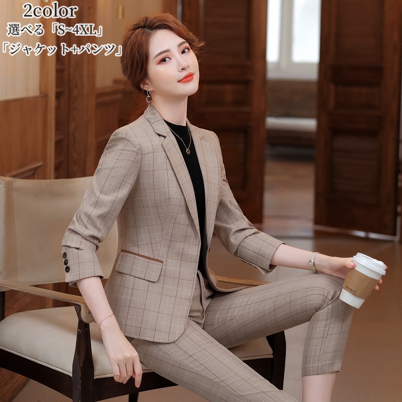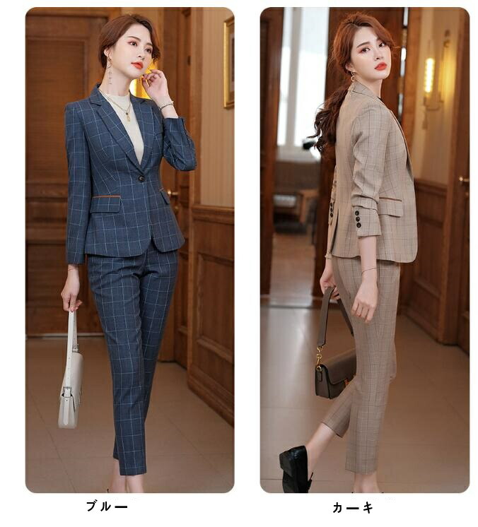 パンツスーツ 2点セット レディース レディースファッション 特集 ブルー カーキ S M L XL 2XL 3XL 4XL