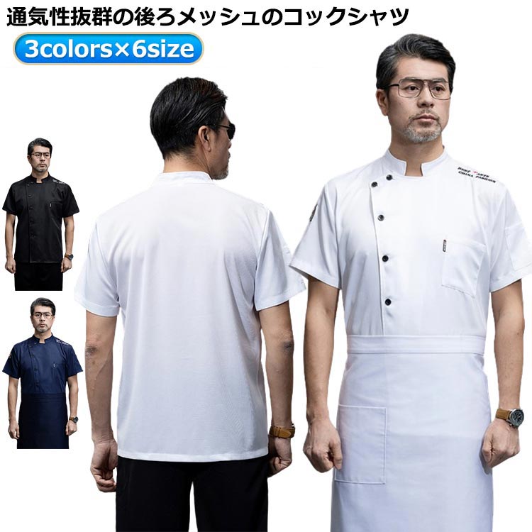 コックシャツ 半袖 通気性 夏 コック 白 黒 紺 M L XL 2XL 3XL 4XL