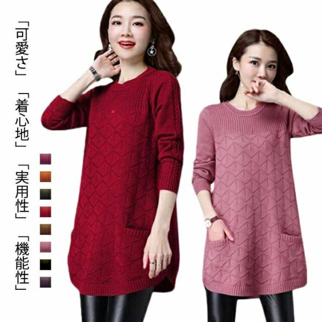 全8色×7サイズ チュニックニット レ ワンピース 続々登場 ブラック ワイン モカ ダークパープル ピンク オレンジ パープル グリーン M L XL 2XL 3XL 4XL 5XL