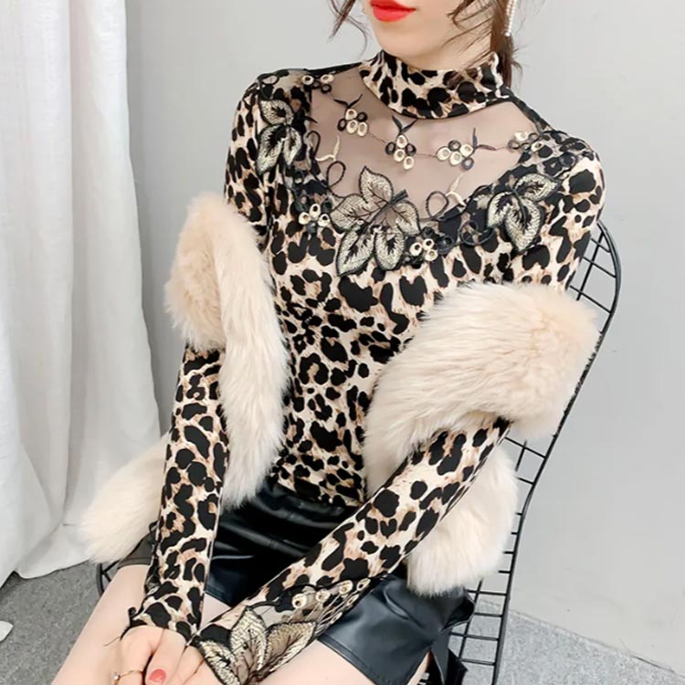 ストレッチ素材 カットソー tシャツ レディースファッション 特集 ヒョウ柄薄手 ヒョウ柄裏起毛 M L XL 2XL 3XL 4XL