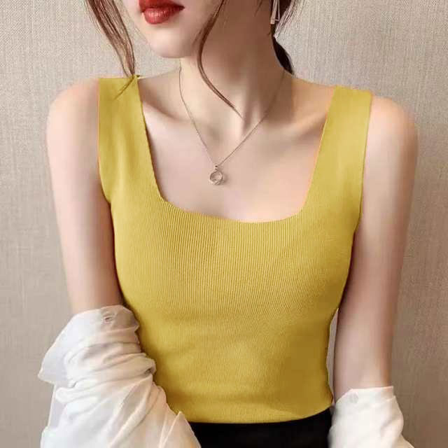 スクエアタンクトップ レディース タン トップス タンクトップ 早い者勝ち ホワイト ブラック ベージュ ピンク イエロー ブルー S M L XL