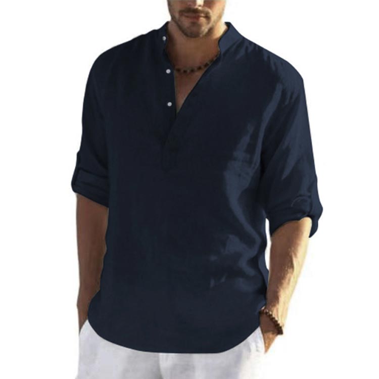 シャツ メンズ 長袖 襟なしシャツ カ メンズファッション 続々入荷中 カーキ ネイビー ホワイト ブラック グレー ライトブルー S M L XL 2XL 3XL