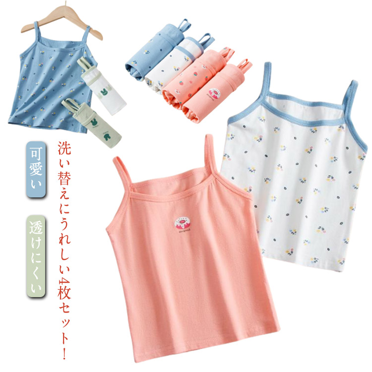 肌着 キッズ キャミソール 4枚セット キッズ トップス キャミソール 新登場! ホワイト(4枚セット) グリーン(4枚セット) パープルホワイト(4枚セット) ブルーホワイト(4枚セット) ピンク(4枚セット) ピンク(イチゴ4枚セット) ブルー(花4枚セット) パープル(4枚セット) 100 110 120 130 140 150 160