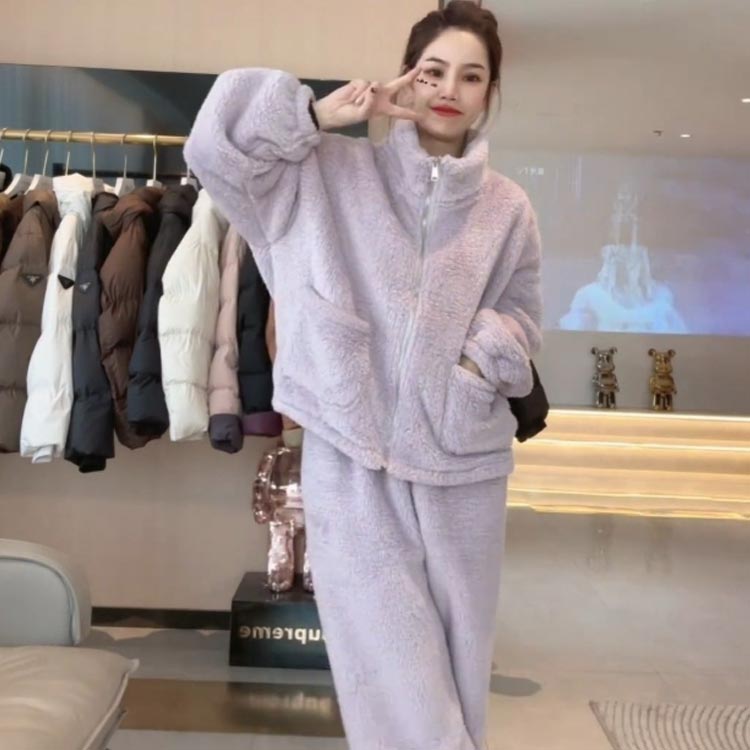 パジャマ フリース レディース 秋冬 レディース ナイトウェア ルームウェア パジャマ 続々登場 パープル ピンク ベージュ M L XL 2XL