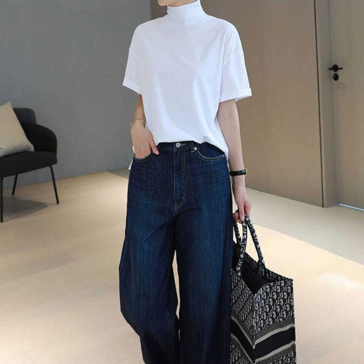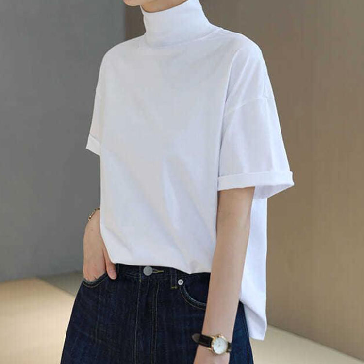 首もとをおしゃれに隠せる Tシャツ レ レディースファッション 特集 ブラック ホワイト M L XL 2XL 3XL