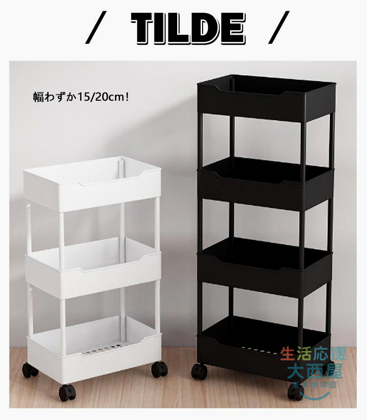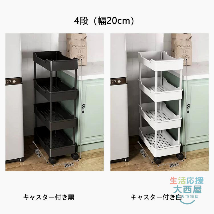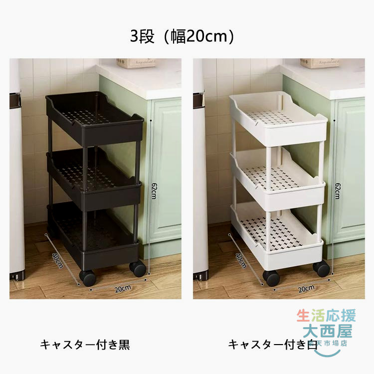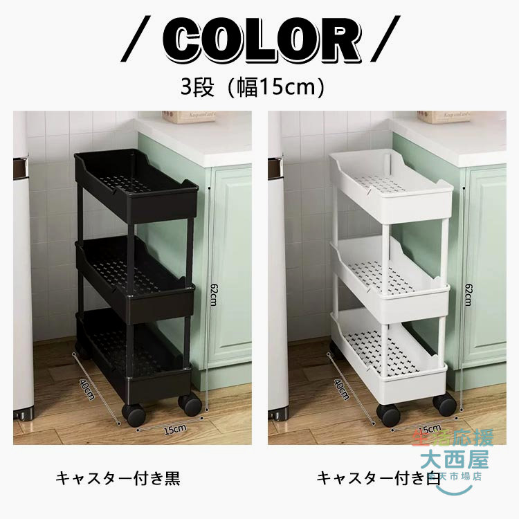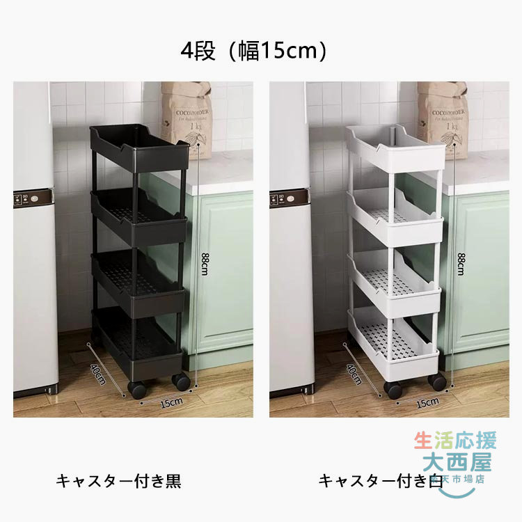 幅15cm 収納ラック 隙間ラック ス キャスター付き白 キャスター付き黒 3段(幅15cm) 4段(幅15cm) 3段(幅20cm) 4段(幅20cm)