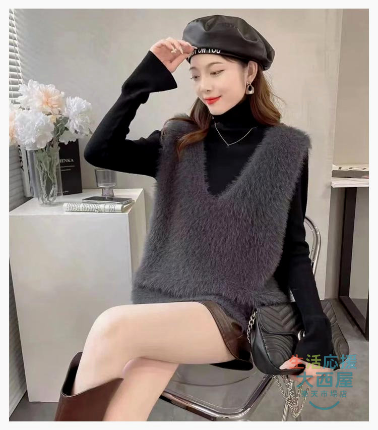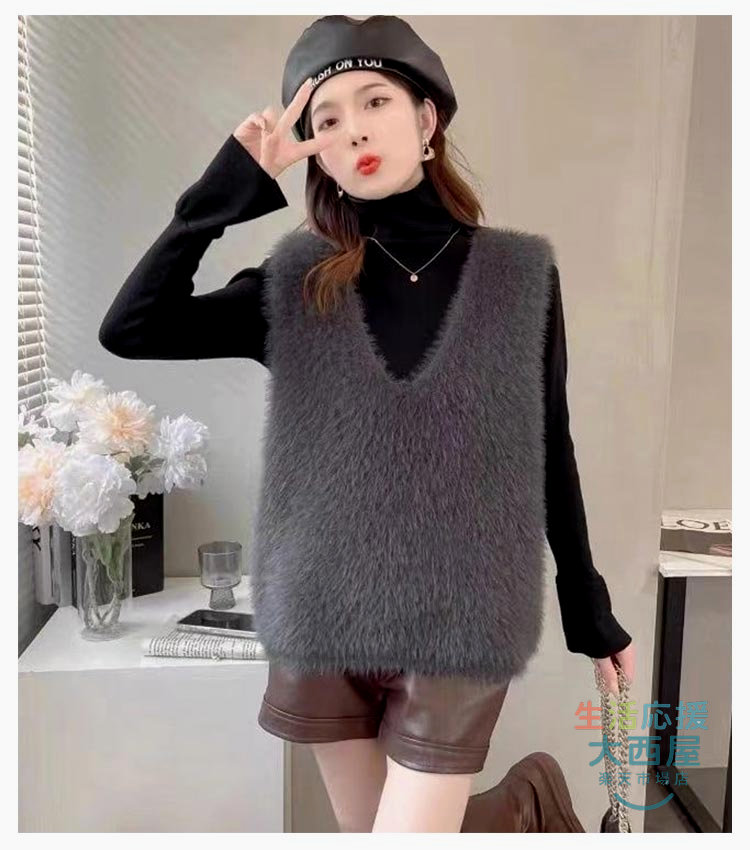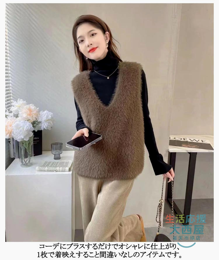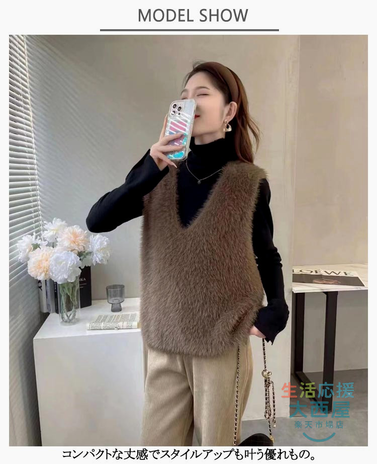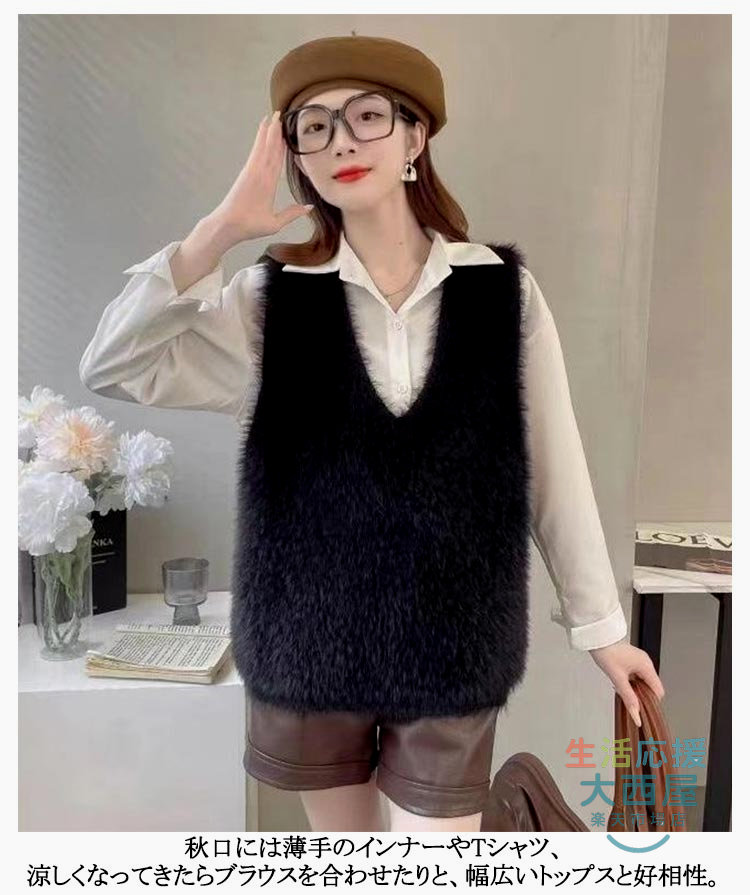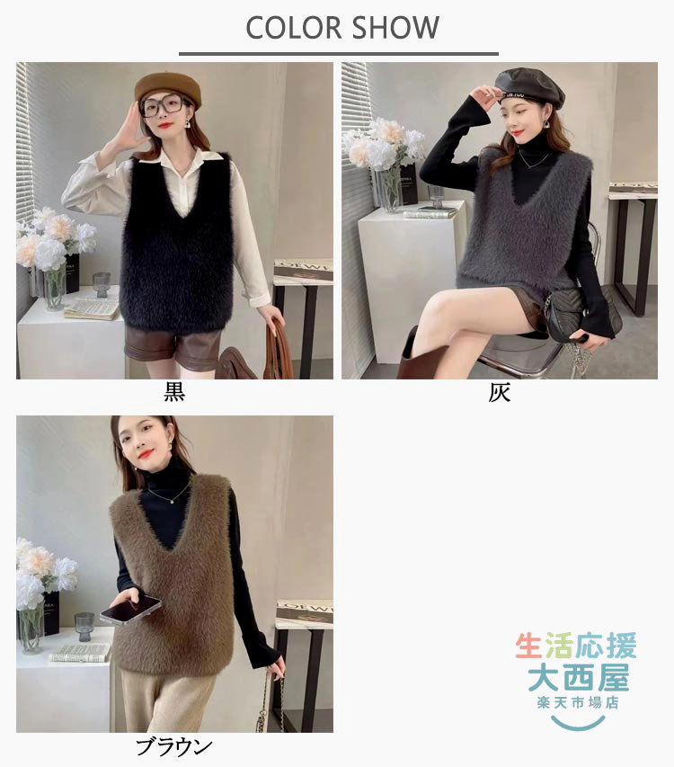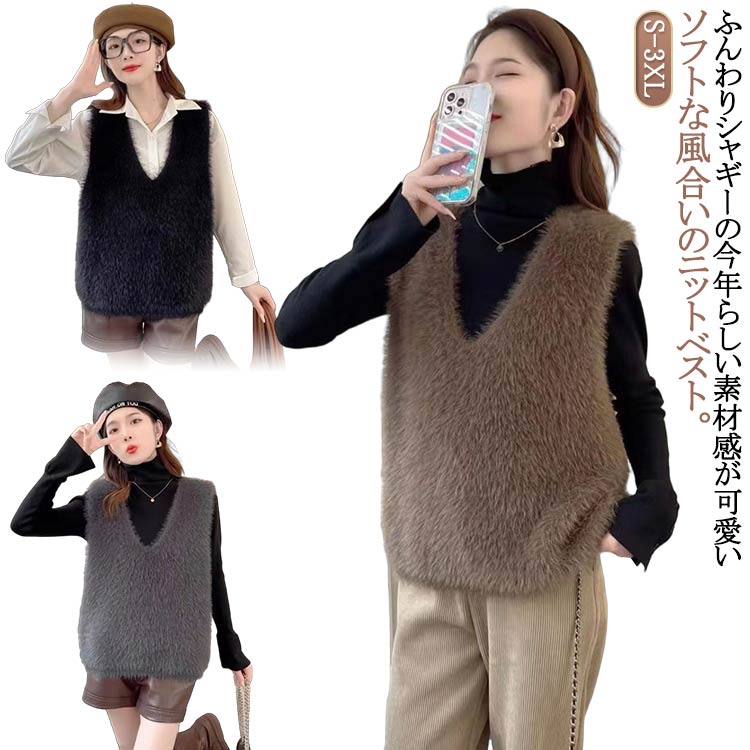 ニットベスト レディース 秋冬 シャギ トップス ベスト 豊富 黒 灰 ブラウン S M L XL 2XL 3XL