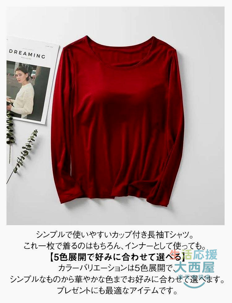 インナー 長袖 カップ付き 肌着 ブラ レディース インナー 下着 ブラトップ 新登場! ブラック グレー レッド パープル ピンク M L XL 2XL 3XL