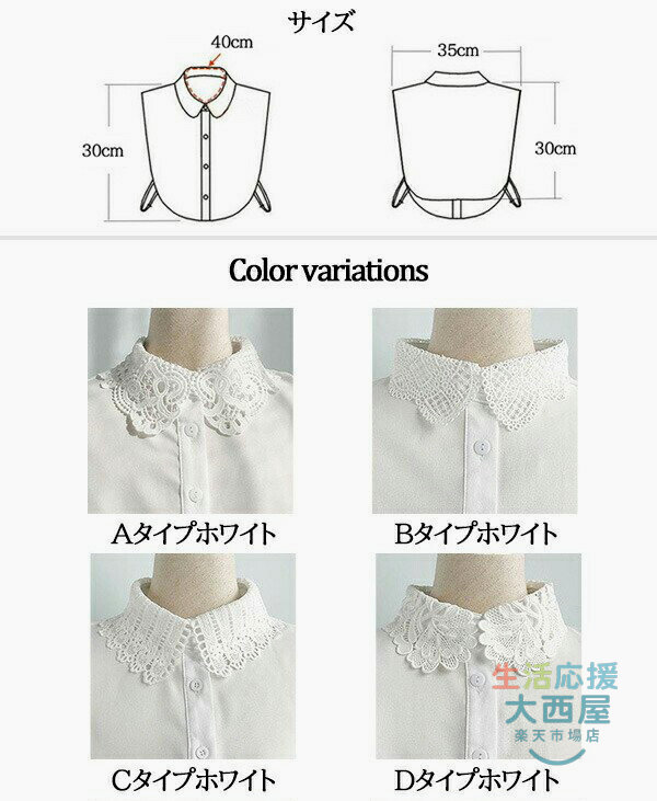 付け襟 レース 9タイプ レイヤード バッグ 小物 ブランド雑貨 続々登場 A ホワイト A ブラック B ホワイト B ブラック C ホワイト C ブラック D ホワイト D ブラック E ホワイト