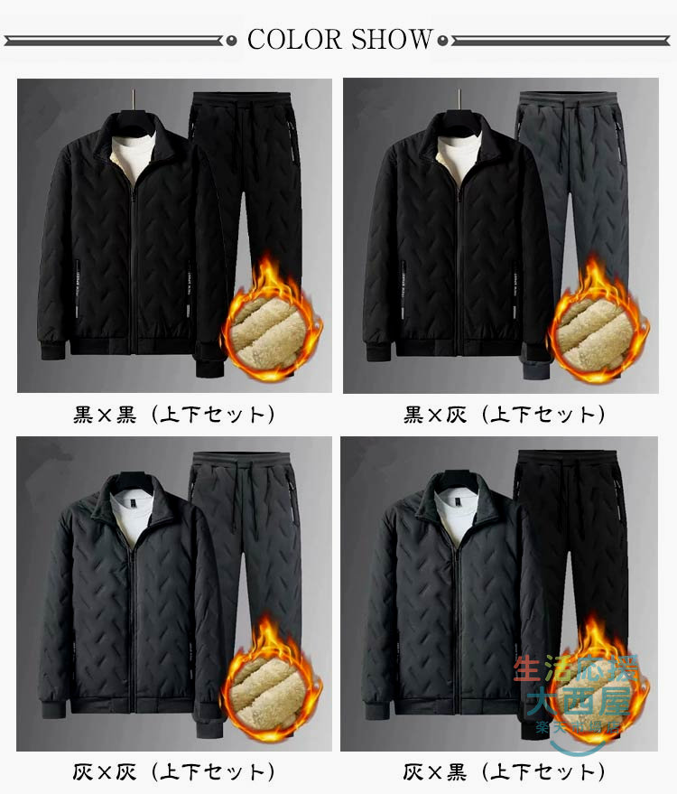 中綿ジャケット 裏ボア 上下セット メ メンズファッション 特集 黒×黒(上下セット) 黒×灰(上下セット) 灰×灰(上下セット) 灰×黒(上下セット) L XL 2XL 3XL 4XL 5XL