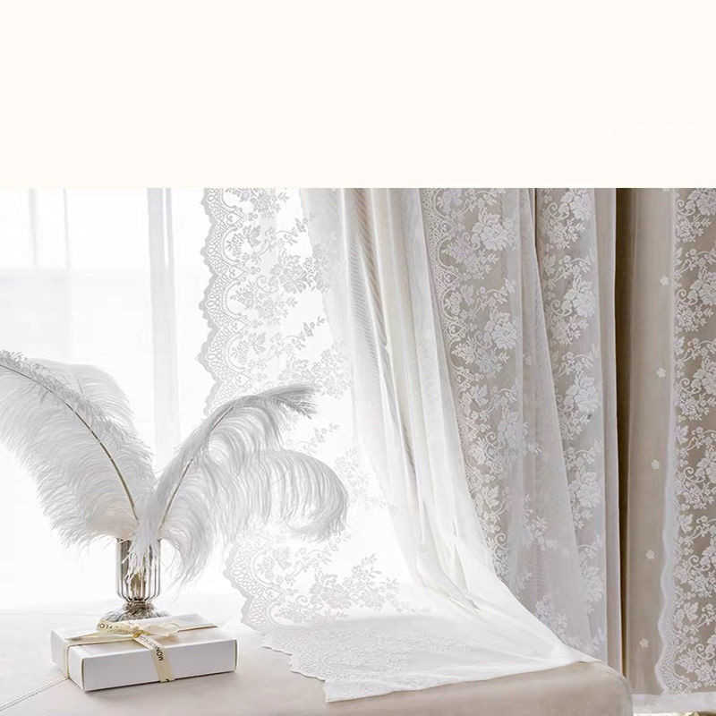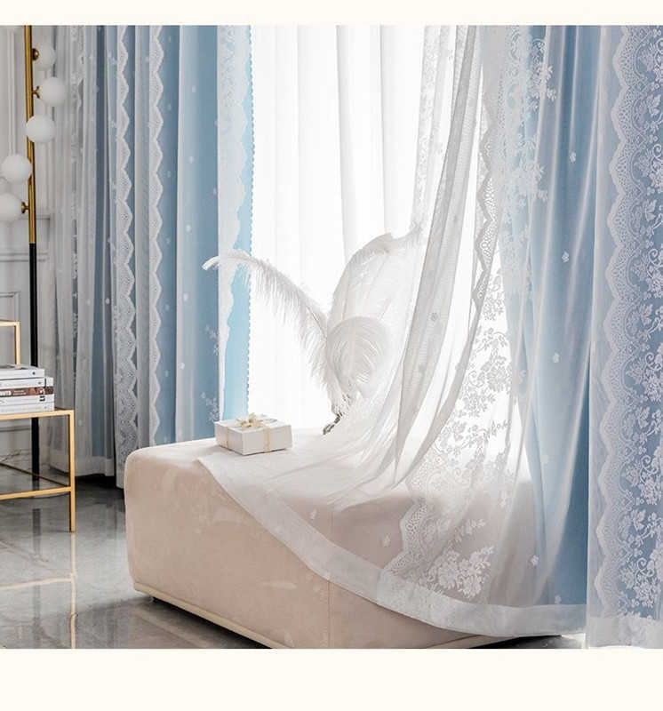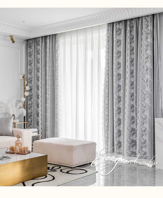 両開き 姫系 2重カーテン 一体型カー ベージュ ライトグレー ブルー ピンク