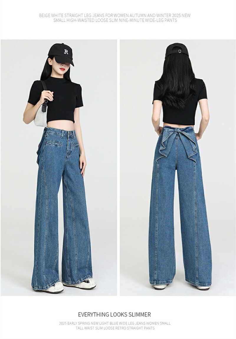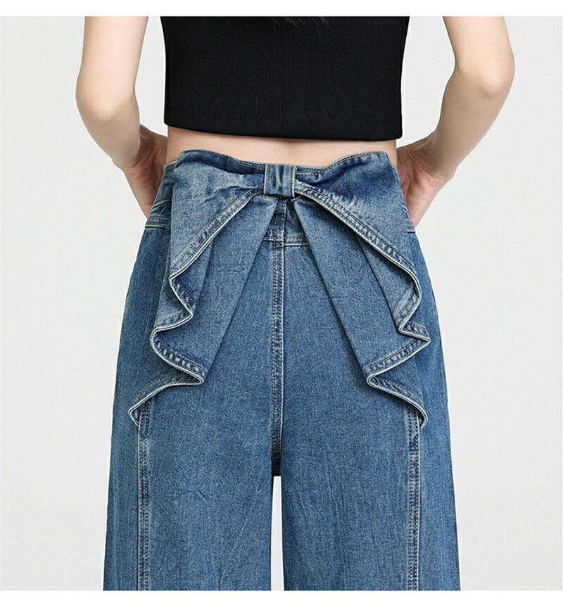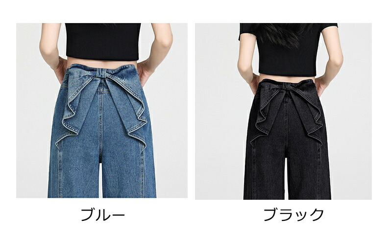 バックリボンデニムパンツ デニムパンツ ボトムス パンツ 新登場! ブラック ブルー S M L XL 2XL