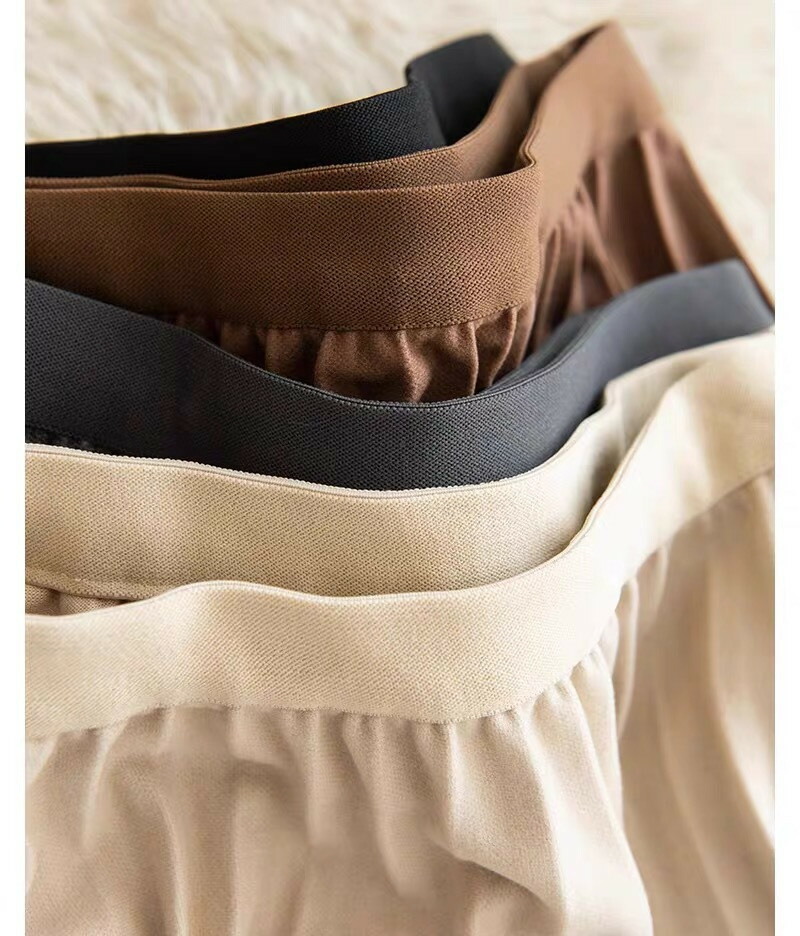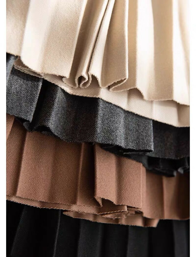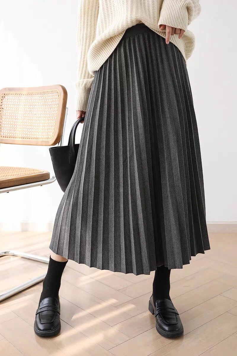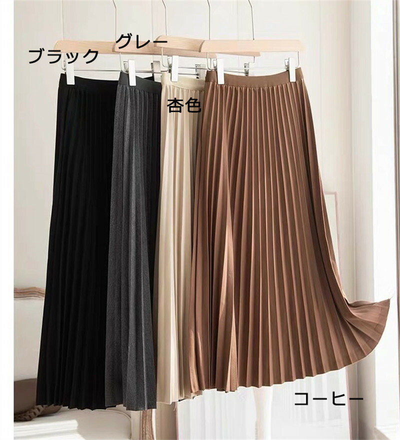 プリーツスカート 秋冬 ウール調 ロン ボトムス スカート 特集 ブラック 杏色 グレー コーヒー