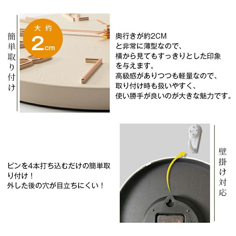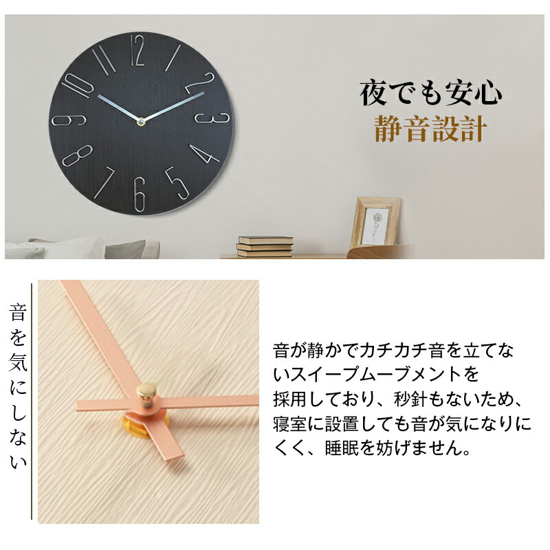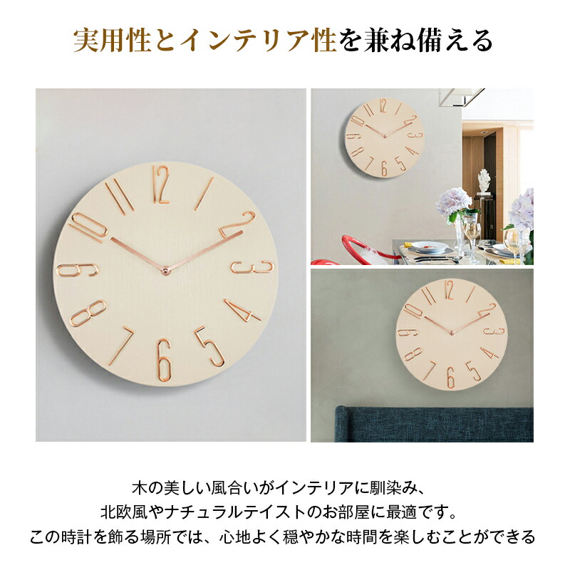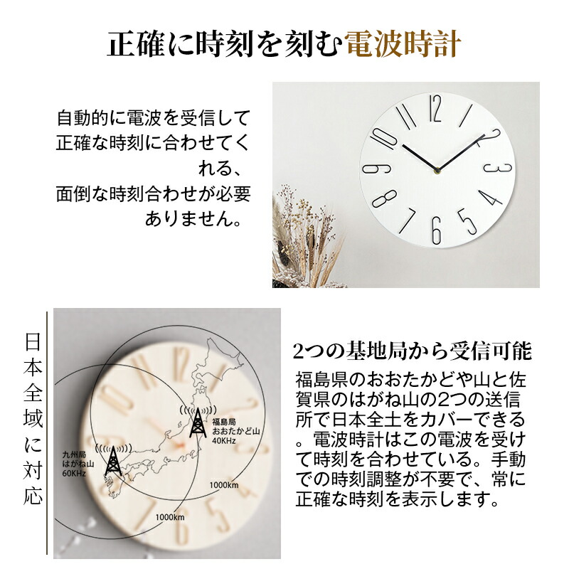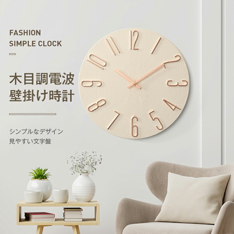 電波時計 壁掛け 時計 おしゃれ 北欧 ベージュ ホワイト ブラック ゴールド ブラウン