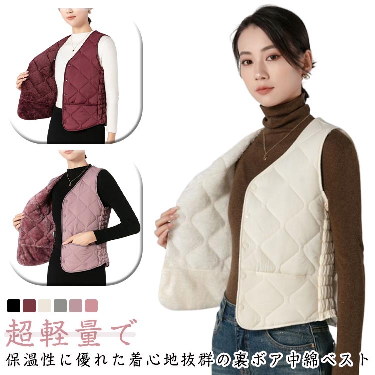インナーベスト レディース 中綿ベスト レディースファッション 豊富な品揃え ブラック ワインレッド ホワイト ダークグレー パープル ピンク M L 2XL 3XL 4XL