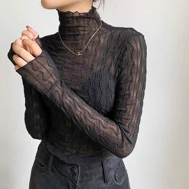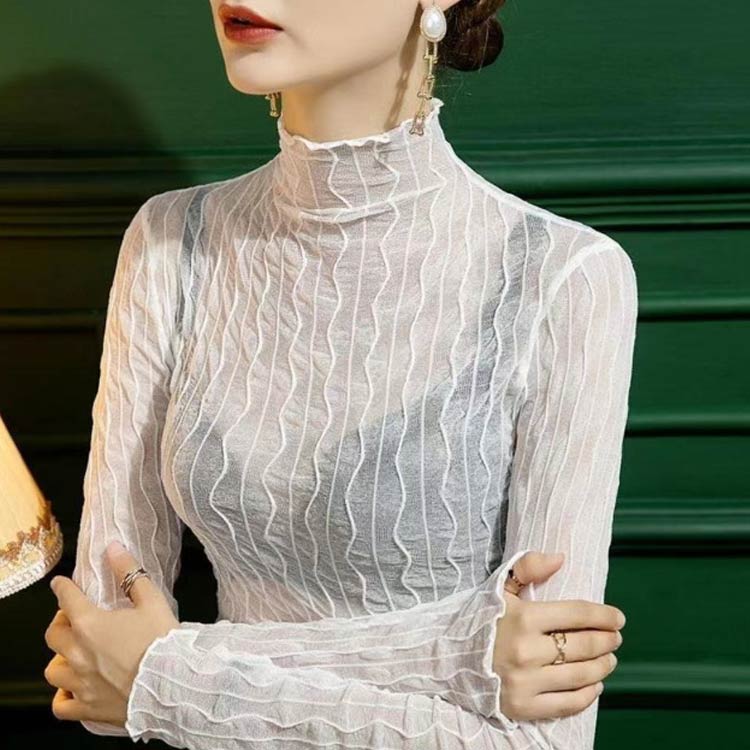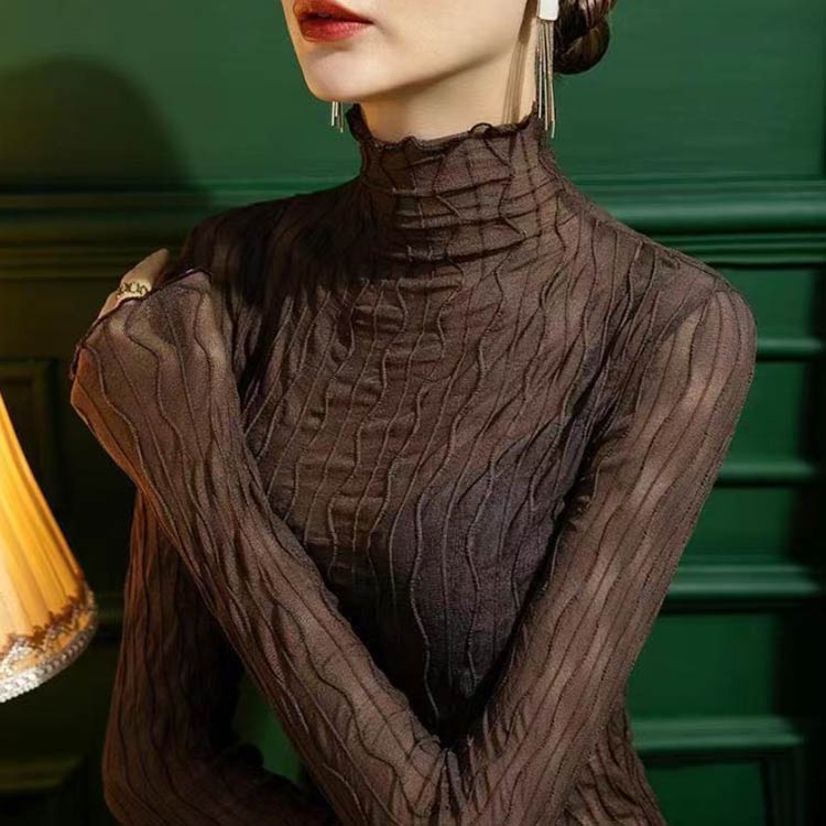 タートルネック シアー インナー 透け レディースファッション 通販 ホワイト ブラック イエロー ブラウン ダークブラウン S M L XL 2XL
