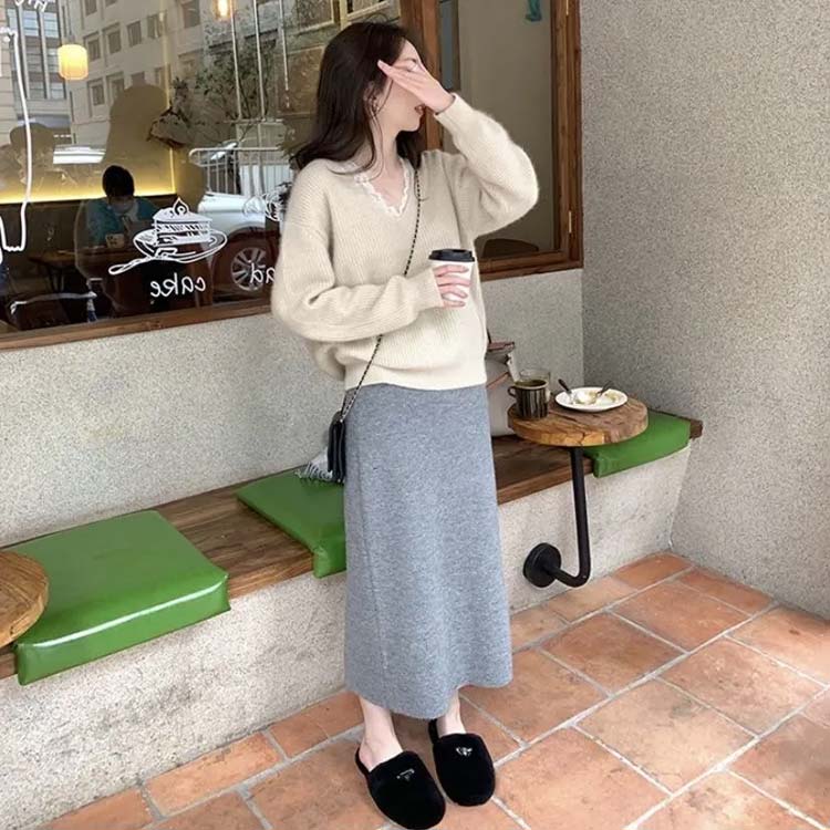スカート リブ ニットタイト ロングス ボトムス スカート 通販 ピンク ベージュ グレー ブラック オートミール ライトブラウン S M L XL 2XL 3XL