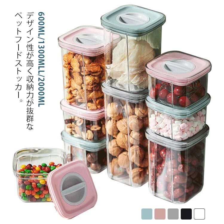 密閉 ドッグフードストッカー 猫 保存 保存容器 調味料入れ 保存容器 キャニスター 続々登場 グリーン ピンク グレー ホワイト ブラック 600ml 1300ml 2000ml