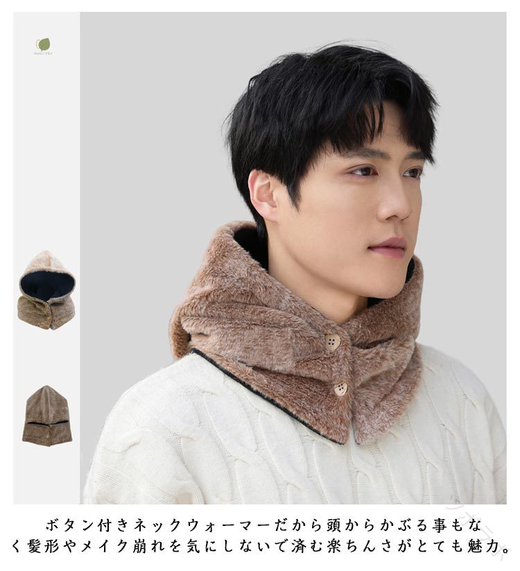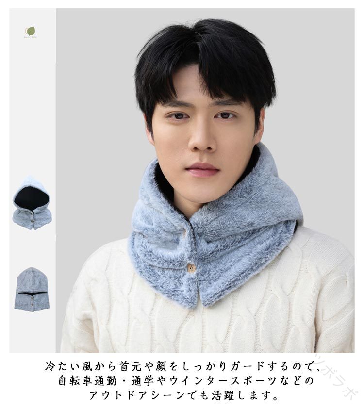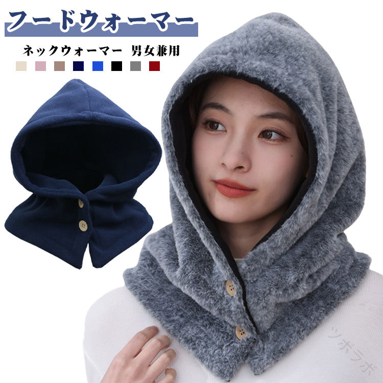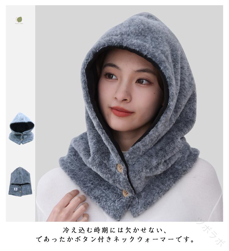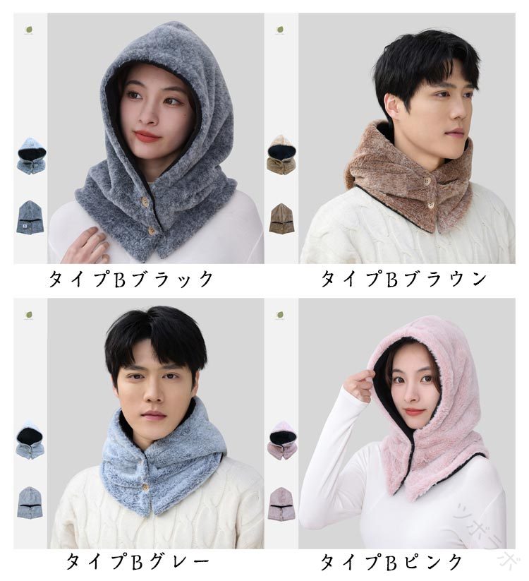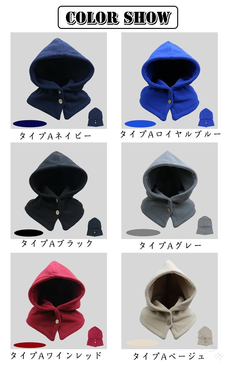 フリース ボタン付き 帽子 フード付き マフラー スカーフ ネックウォーマー スヌード 続々登場 タイプAネイビー タイプAロイヤルブルー タイプAブラック タイプAグレー タイプAワインレッド タイプAベージュ タイプBブラック タイプBブラウン タイプBグレー タイプBピンク
