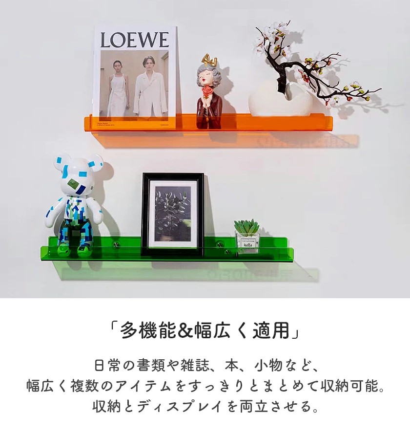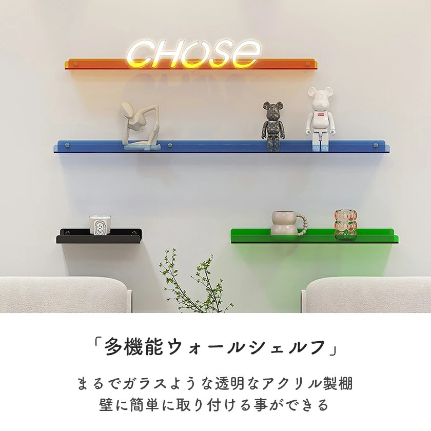 ウォールシェルフ マガジンラック 壁掛 透明 オレンジ ブルー グリーン グレー 30*10cm 60*10cm 90*10cm 120*10cm
