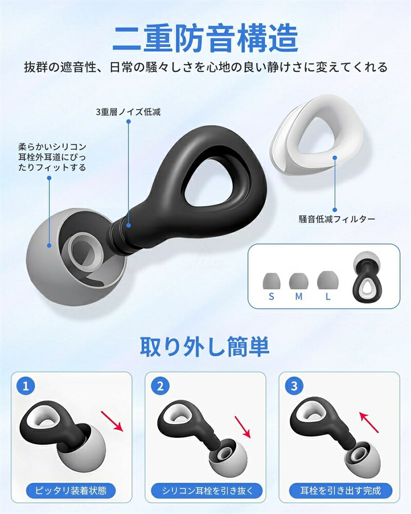 耳栓 遮音 リラックス 飛行機 快眠 ブラック パープル