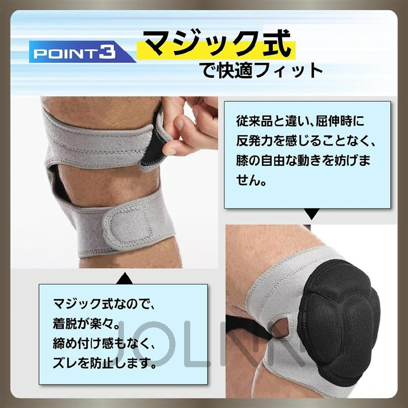 わずか数秒で装着できるこの膝パッドは、テープ式の画期的なデザインを採用。