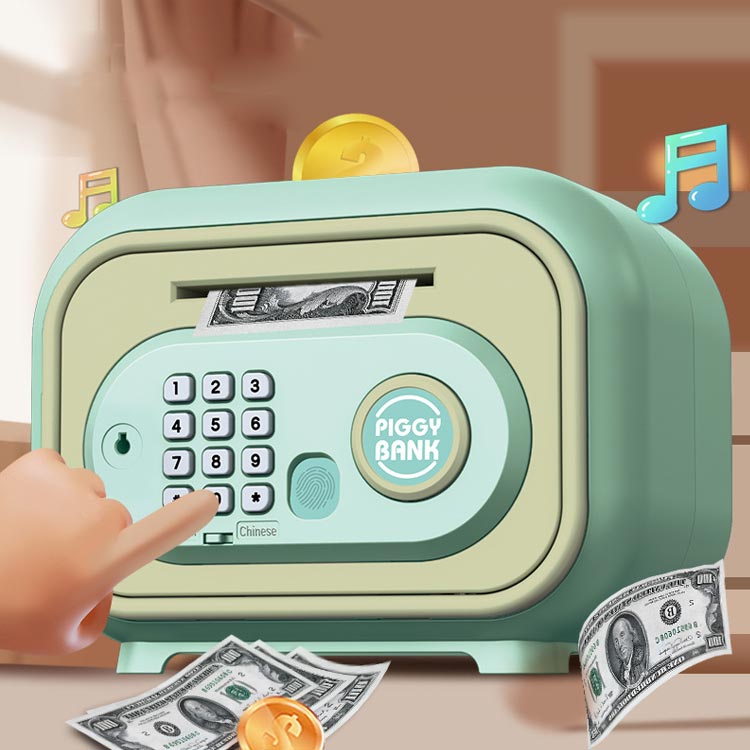 玩具 指紋認証 かわいい 金庫型 お小 グリーン ピンク