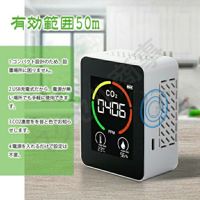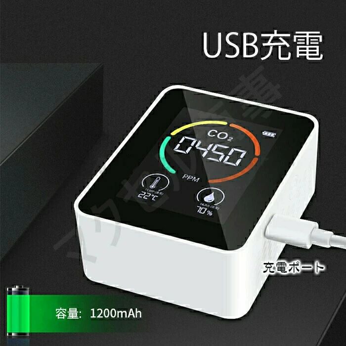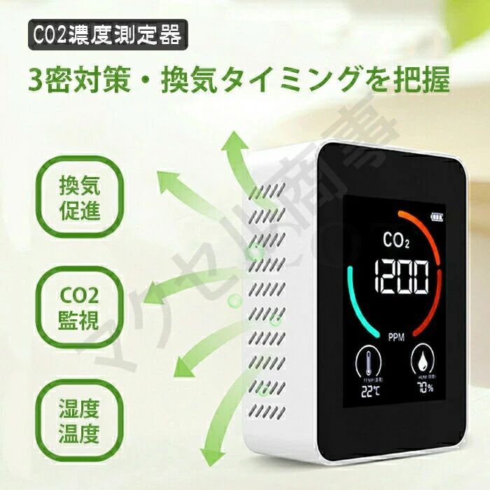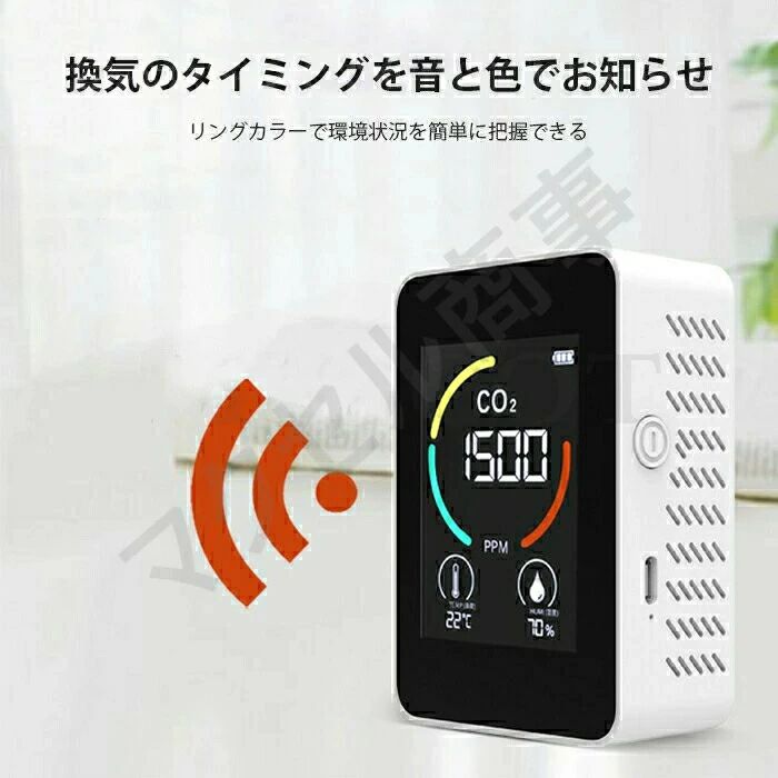 換気アラーム機能付き 温度計 濃度計 ホワイト ブラック
