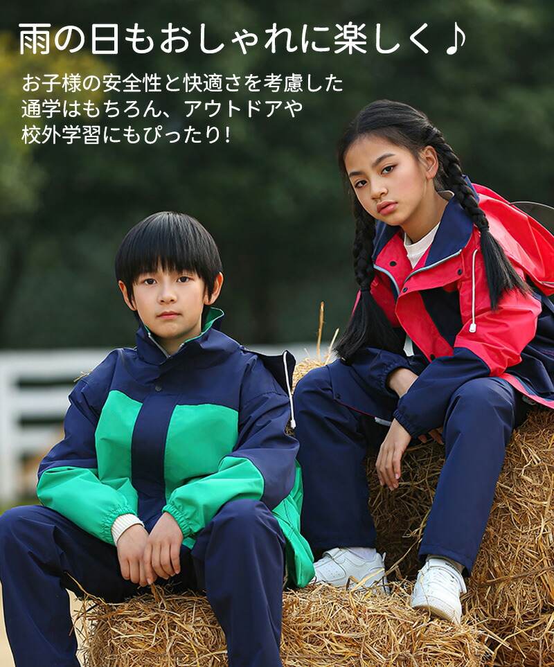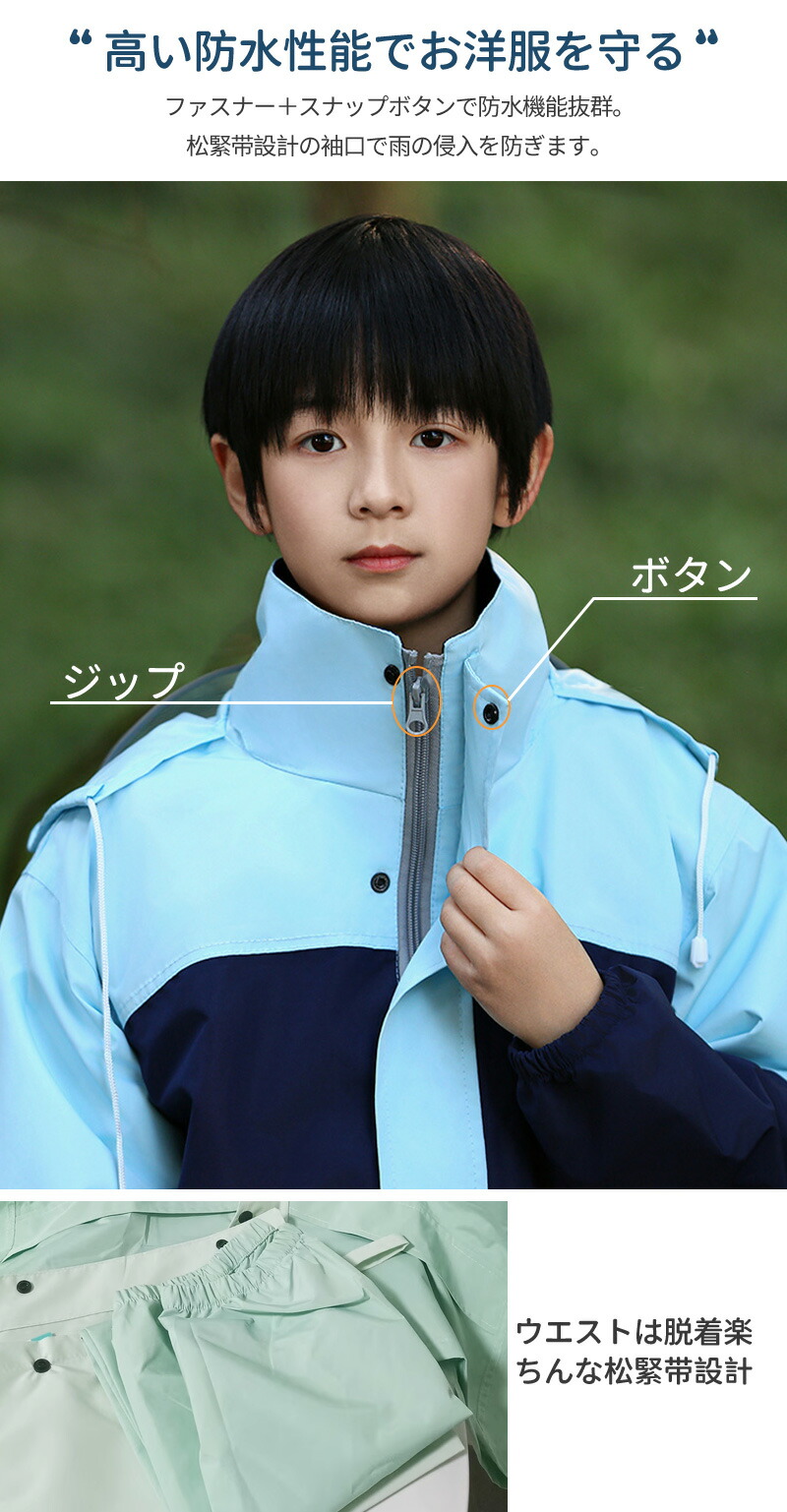 レインコート キッズ 上下 セパレート ランドセル 対応 上下セット 合羽 カッパ レインウェア 子供 ジュニア 防水 収納袋付き レインスーツ カッパ上下レインウエア 男の子 中学生 140c 雨具
