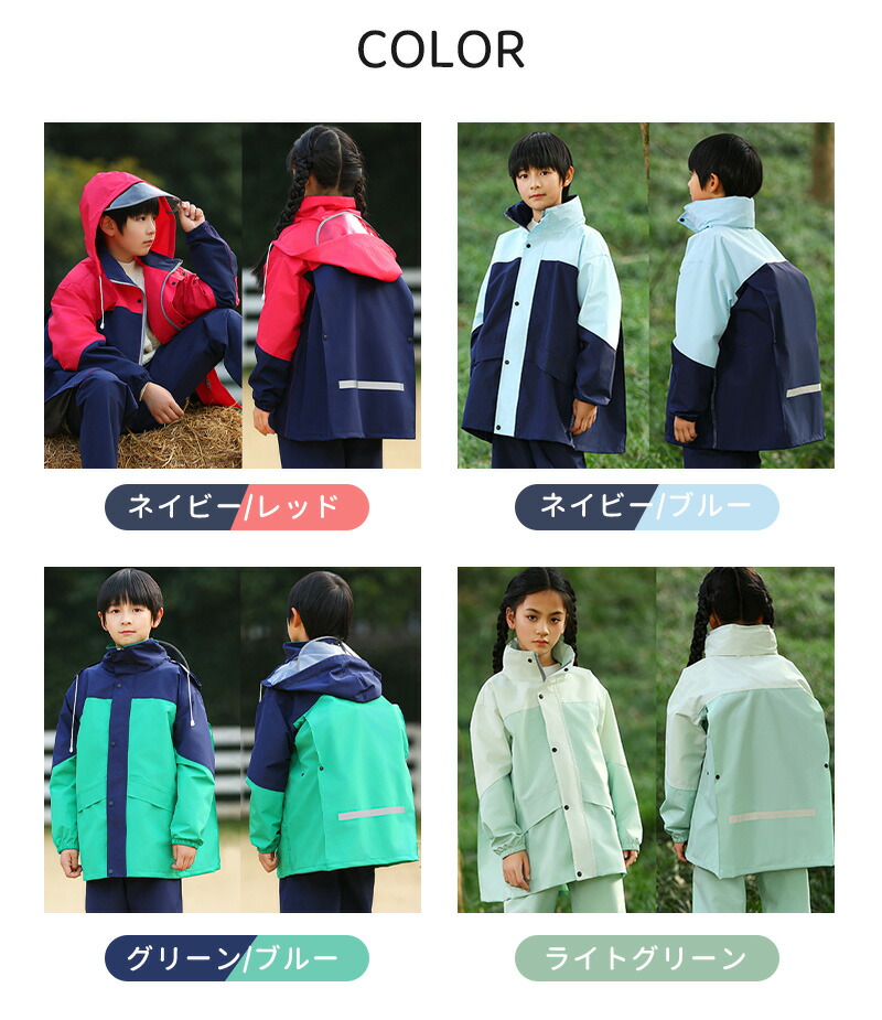 レインコート キッズ 上下 セパレート ライトグリーン ネイビー/ブルー グリーン/ブルー XL 2XL 3XL 4XL
