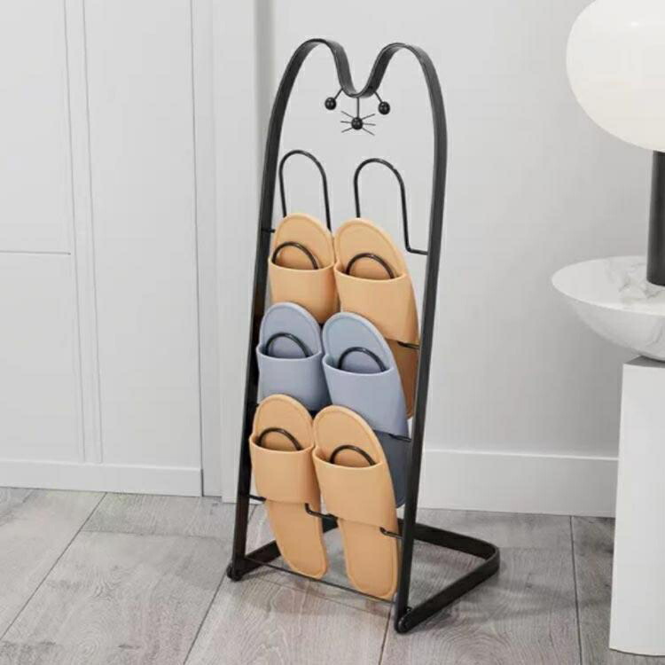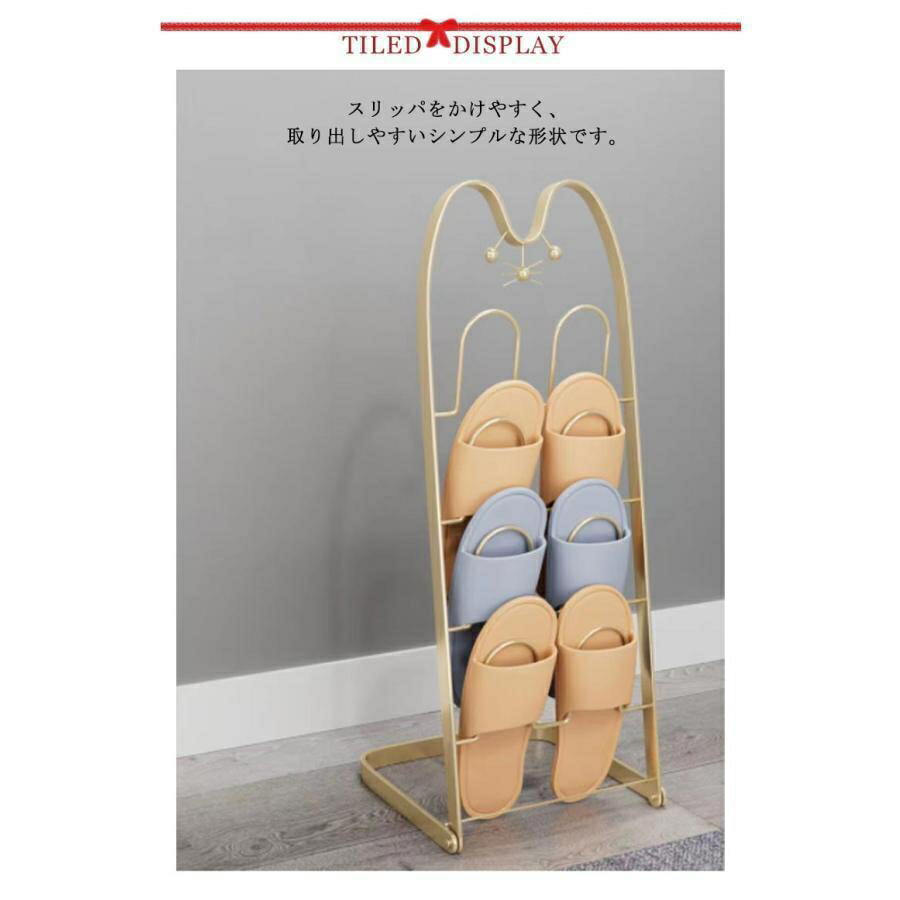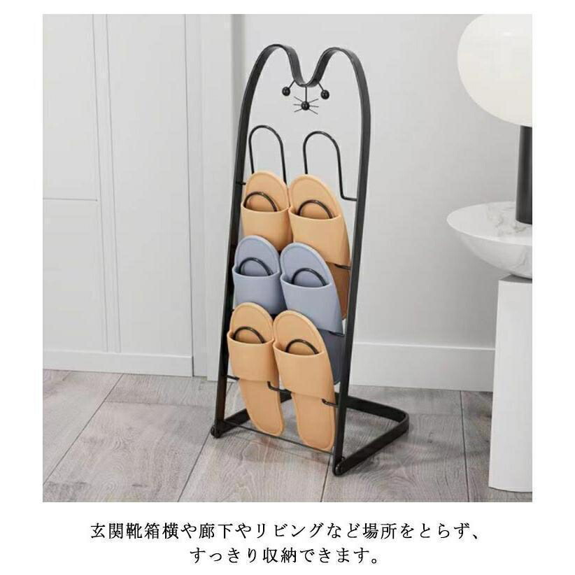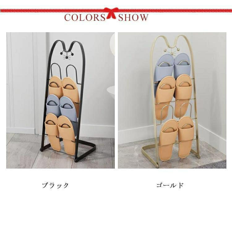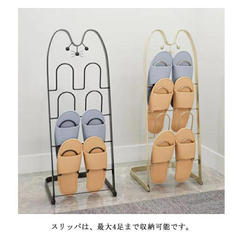 スリッパラック 猫顔 折り畳みスリッパ ブラック ゴールド