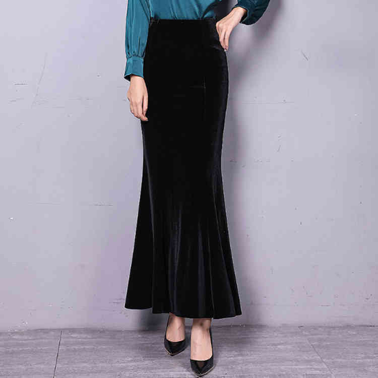 ベロア素材ロングスカート マーメイドス レディースファッション 特集 ブラック グリーン S M L XL XXL