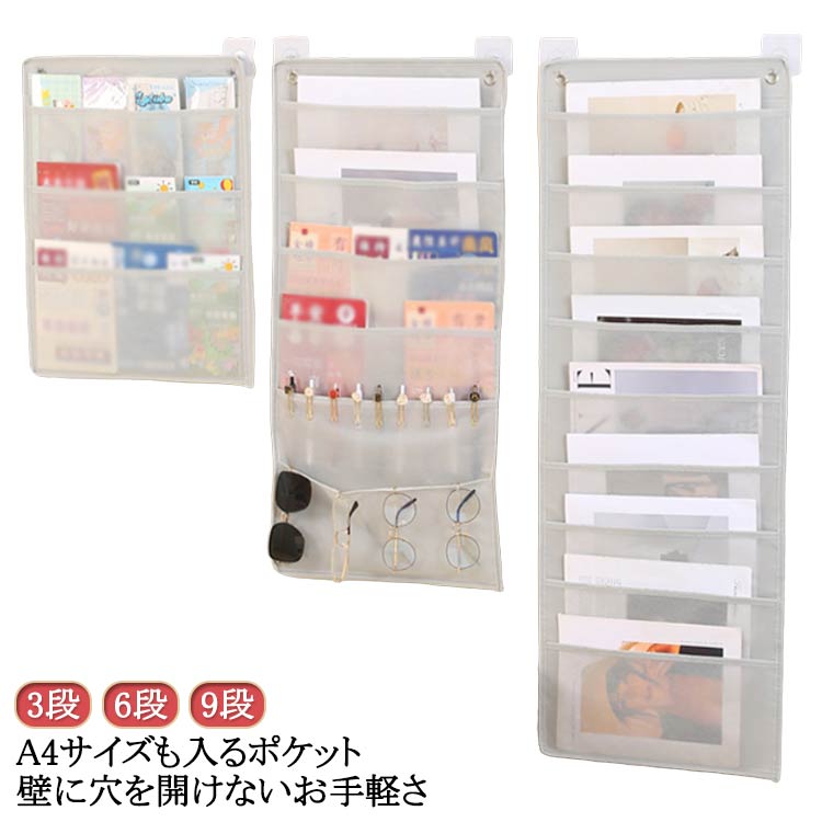 収納 ケース 玄関 吊り下げ ウォール グレー ベージュ 3段 6段 9段
