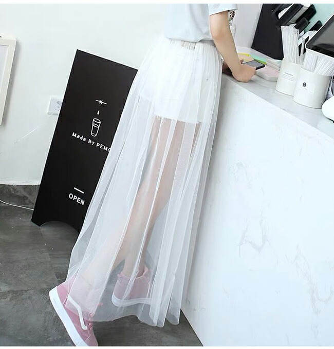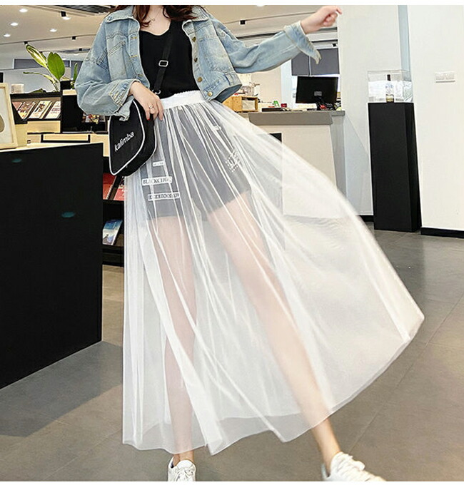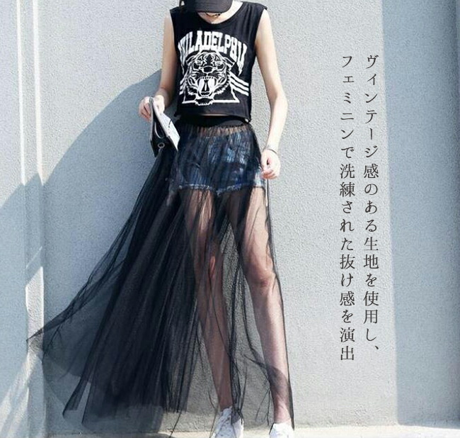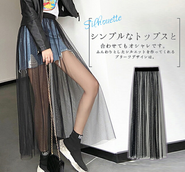 チュールスカート シースルー 重ね着コ ボトムス スカート 通販 ブラック ホワイト M(丈78cm) L(丈78cm) XL(丈78cm) M(丈85cm) L(丈85cm) XL(丈85cm)