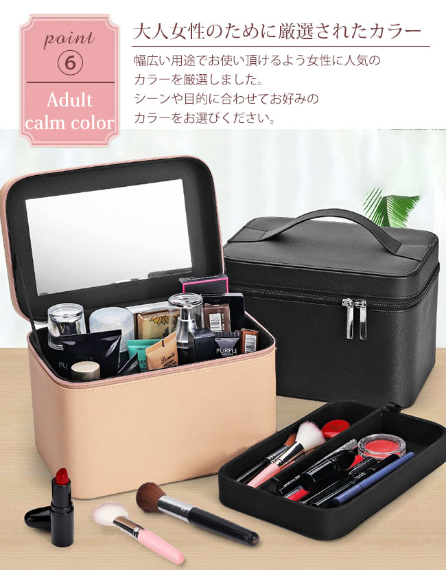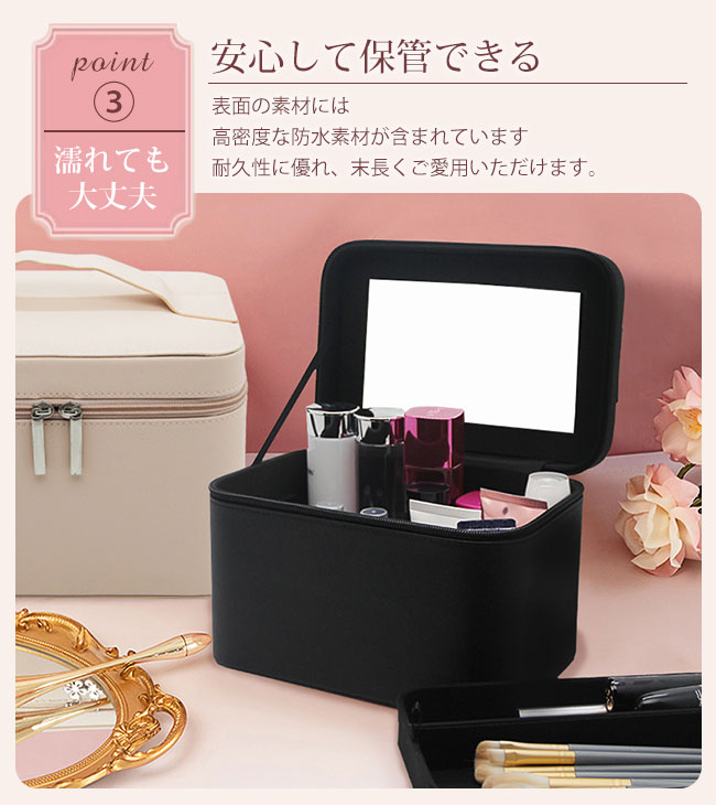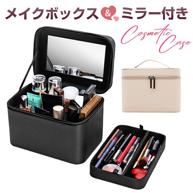 メイクボックス 大容量 鏡付き コスメ ブラック ベージュ