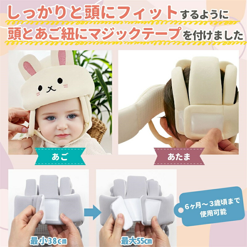 ベビー 赤ちゃん ヘルメット 4タイプ ヘッドガード 転倒防止クッション メッシュ通気性 あたま ベビーヘッドガード 赤ちゃん 転倒 防止 ヘルメット ヘッドガード ごっつん防止 360度保護 (ウサギ) _ ベビー&マタニティ