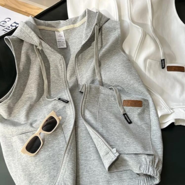 ノースリーブパーカー ベスト レディー レディースファッション 豊富 グレー ホワイト ブラック S M L XL 2XL