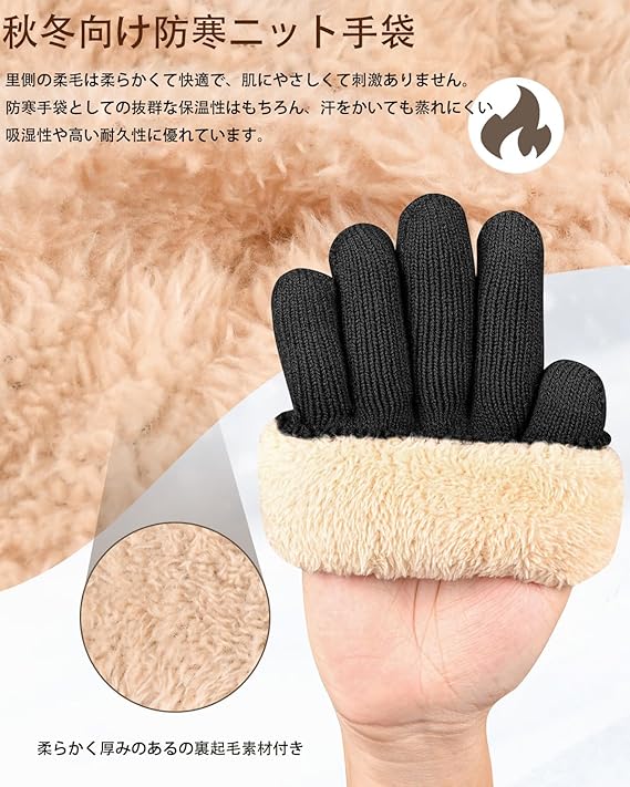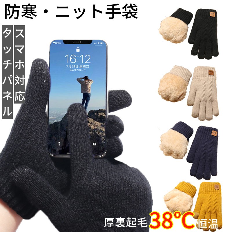 ニットグローブ 手袋 防寒 冬 スマホ対応 アウトドアグローブ 防寒グローブ 暖かい 厚手 ニット手袋 防風 保温 冷え性 柔らか 男女兼用 メンズ ふわふわ 厚裏起毛38℃恒温 二層ニッ レディース