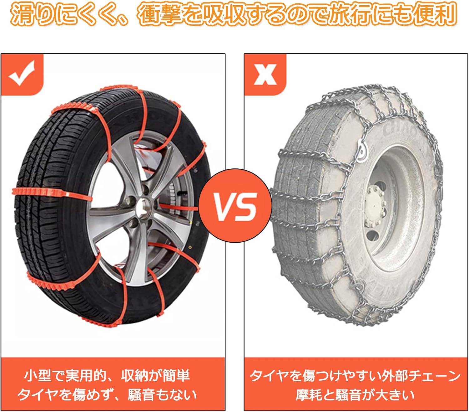 【非金属】非金属高品質のナイロン材料、高耐久性、金属防止チェーンよりも軽くて簡単に持ち運ぶことができ、突然の雪やその他の緊急事態に適しています