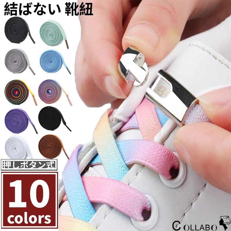 2足セット靴紐 結ばない ほどけない 靴 早い者勝ち ホワイト ブラック スガイブルー ブラウン レインボー グラデーション ダークグレー グレー パープル グリーン