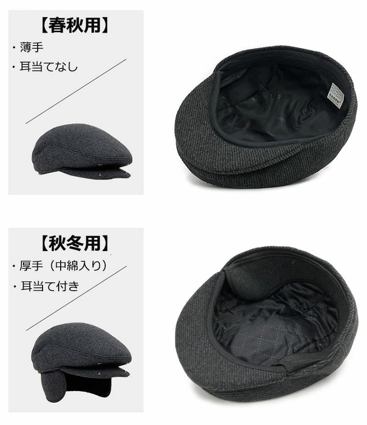 耳当て付き キャップ 中綿入り ウール 帽子 メンズ帽子 ハンチング キャスケット 人気 ボーダー柄(秋冬用) ボーダー柄(春秋用) チェック柄(秋冬用) チェック柄(春秋用) 56cm 57cm 58cm 59cm 60cm