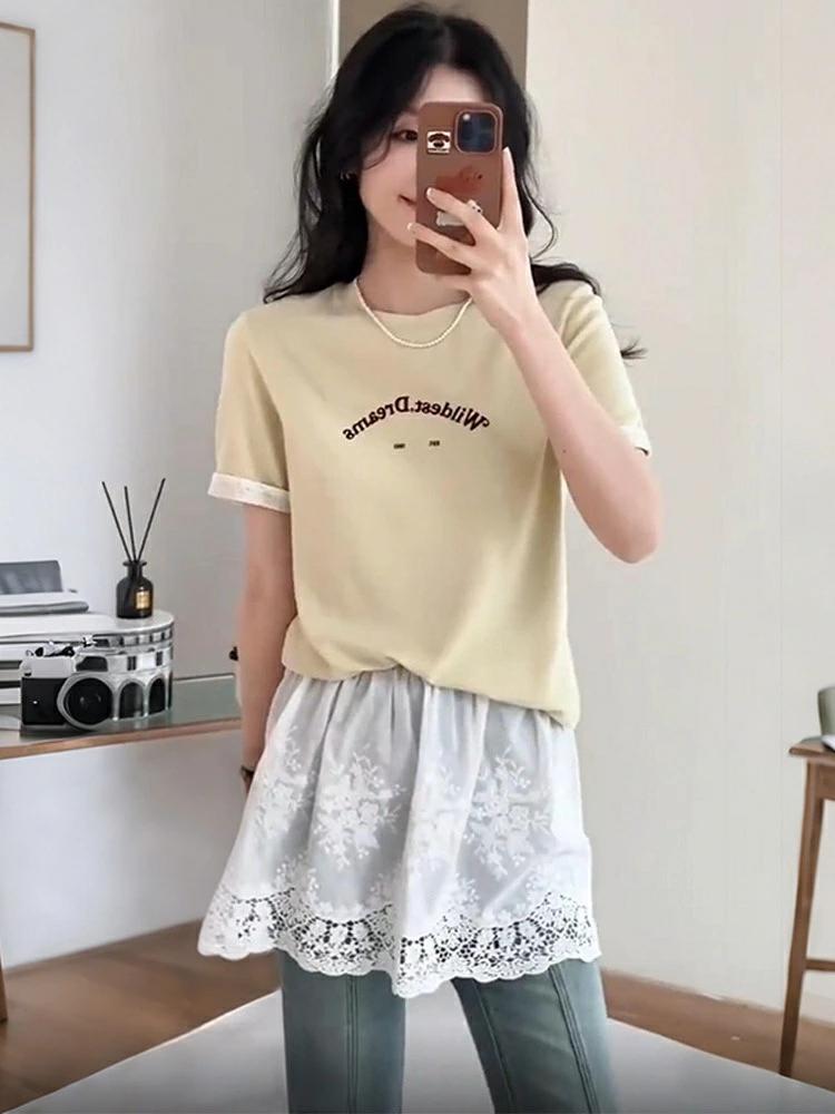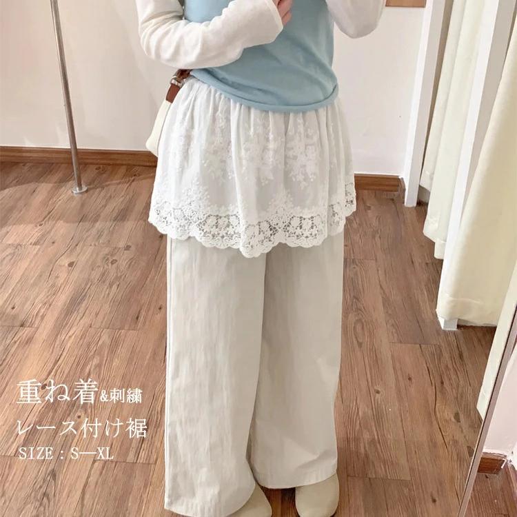 刺繍 レイヤード 重ね着 裾フリル ウ レディースファッション 人気 S M L XL