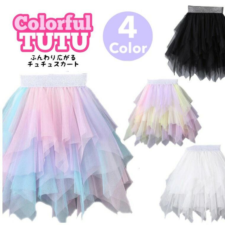 キッズ スカート レディース チュチュ キッズ ベビー マタニティ 豊富 ブラック ホワイト イエロー×パープル  ピンク×ブルー 100 110 120 130 140 150