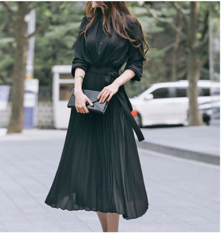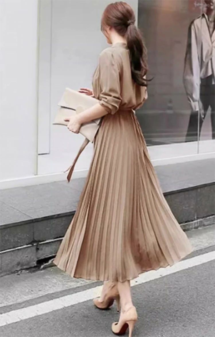 フレア プリーツ マタ フォーマル 上品 大人 夏 春 冬 秋 パーティードレス シャツワンピース 長袖 カジュア オフィスカジュアル